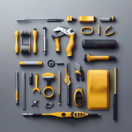 A vibrant collection of various hand tools and accessories displayed neatly on a wooden surface, ideal for showcasing DIY projects, repairs, and craftsmanship.