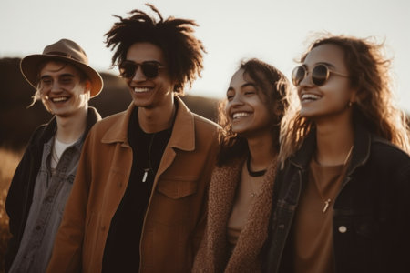 A vibrant tableau unfolds as people from diverse nationalities gather, representing a harmonious blend of cultures, backgrounds, and ethnicities, celebrating the beauty of multiculturalism and unity