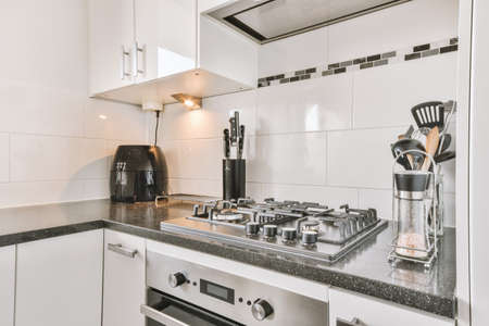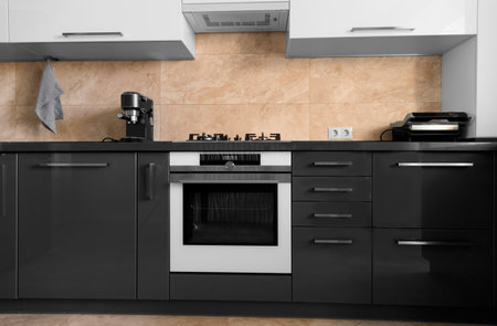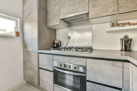 Interior of contemporary kitchen with built-in stove