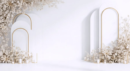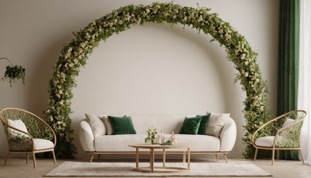 floral installation scene from spring with a geometric arch shape. rendering in 3D.The Generative AI