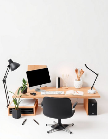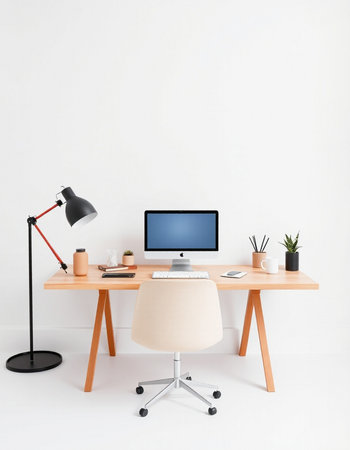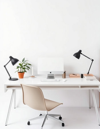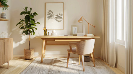 A serene modern workspace featuring natural light, minimalist decor, and stylish furniture, perfect for inspiring creativity and productivity in any setting.