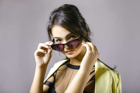 Portrait of a happy beautiful young woman in stylish sunglasses.