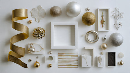 Minimal festive border featuring soft pine textures and delicate metallic ornaments.