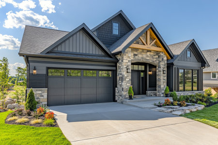 A luxurious new construction home, Modern style of home with car garage.