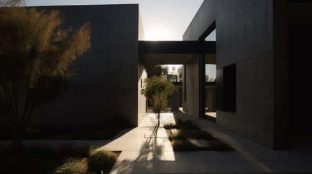 A modern exterior with simple yet striking landscaping and a minimalist gate design. AI generated illustration