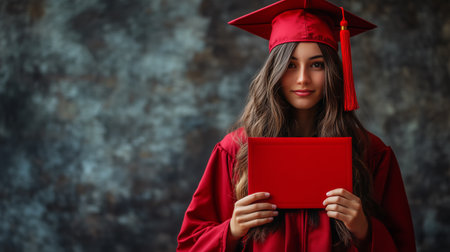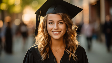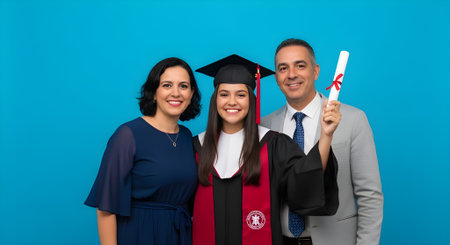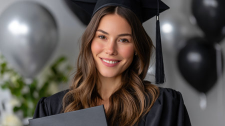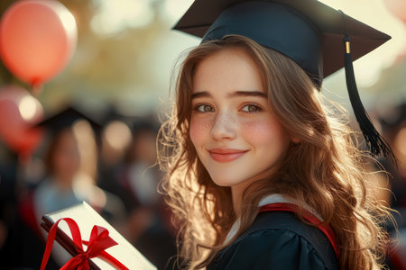 A cheerful graduate holding a diploma, captured with vibrant colors and a celebratory atmosphere, perfect for highlighting educational milestones and graduation celebrations.