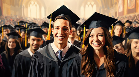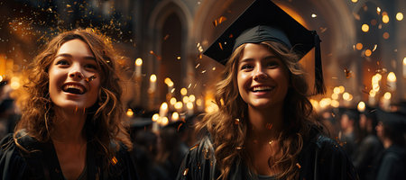 Students throw caps in the air, congratulating graduation each other. It is s a moment of success, unity, and university memories.