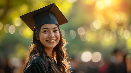 Portrait Young Asian woman university graduates celebrate degree certificate in commencement ceremony. Congratulations, graduation, education.