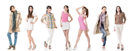 Group of pretty asian women. Isolated on white background.