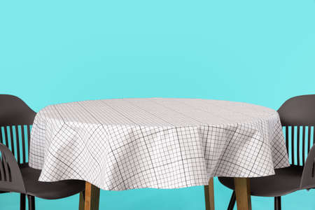 Artistic Checkered Tablecloth: Showcasing a Blurred Kitchen Room Background for Stunning Product Dis