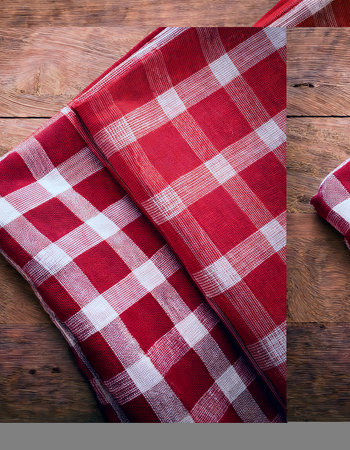 Traditional white and red kitchen chekered towel rustic style for a picnic or tablecloth with tartan pattern. Gingham crampled texture for table napkin