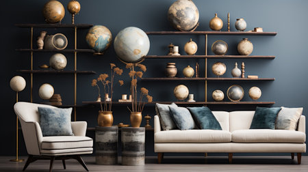 A stylish arrangement featuring art, books, and plants that brings warmth to any space. Embrace modern aesthetics with this design. Generated A.I.