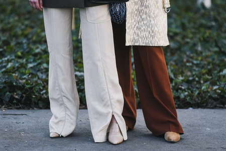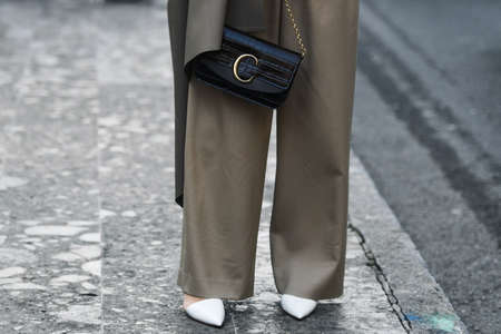 Milan, Italy - February 19, 2020: Street style detail - accesories and clothingstreet style clothing and accesory detail - StreetStyleFW2020
