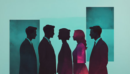 Silhouettes of diverse people against colorful abstract background