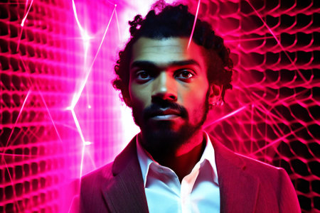 African american man with afro hairstyle in a red neon light