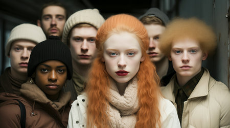 Group of individuals with different skin and hair colors. Racial and ethnic diversity concept.