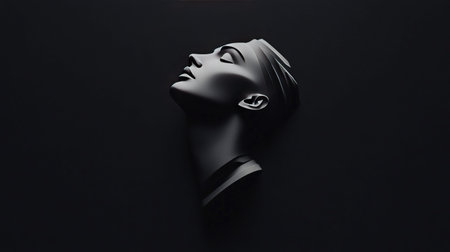 Face front view. Elegant silhouette of a female head. Monochrome gamma.