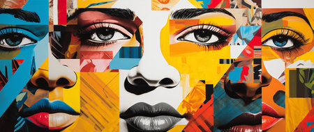 A mural showing diverse faces side by side, vibrant and expressive, celebrating cultural heritage.