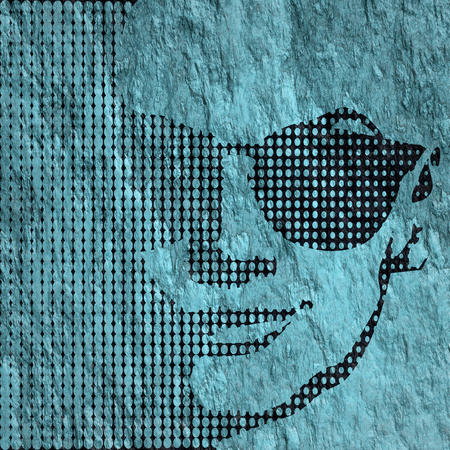 Portrait of beautiful woman in sunglasses. Front view. Half tone texture
