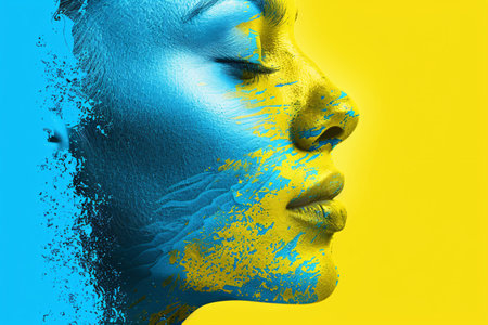 Beautiful Ukrainian woman face in blue and yellow color. Independence Day of Ukraine