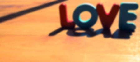 Wooden word LOVE on laminate floor in shadow shade style in Blur style