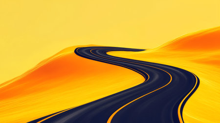 Abstract winding road in vibrant desert landscape, colorful art illustration. Surreal journey and creativity concept