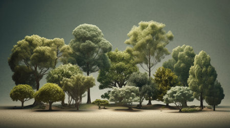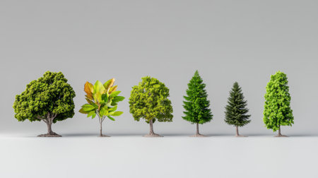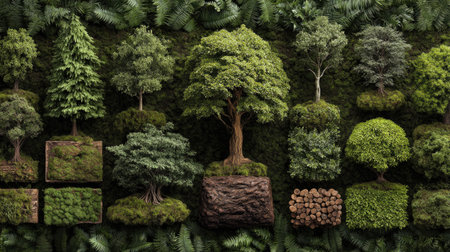Explore a vibrant collection of trees and lush greenery in this serene display. Perfect for environmental themes, nature projects, and botanical designs.