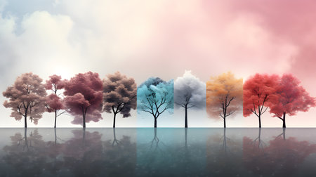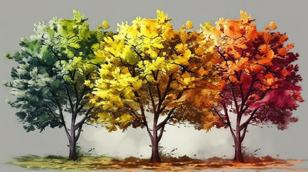 AI Generated. A row of trees shows a changing of seasons