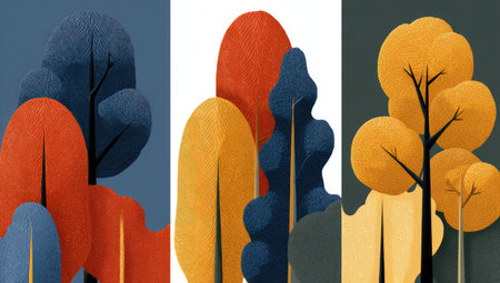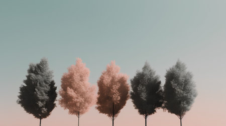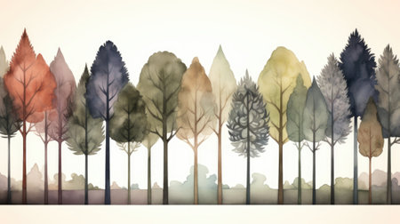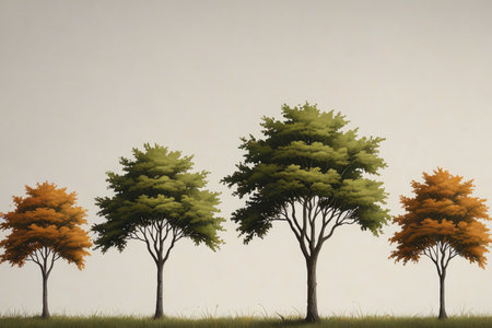 Illustration of a group of trees in a row with different colors