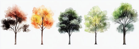Watercolor Trees Seasonal Collection Nature Art Painting Illustration Design Graphic Botanical set