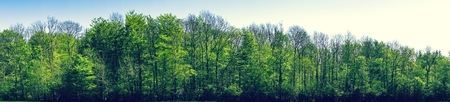 Green beech trees in panorama landscape in the spring
