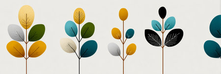 Three stylized trees with yellow and green leaves on a white background
