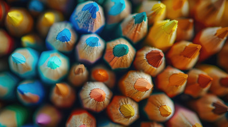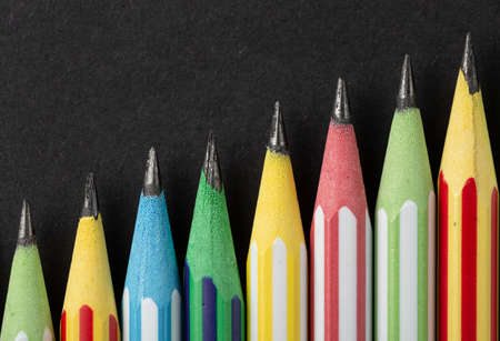 Colored pencils neatly arranged close ups