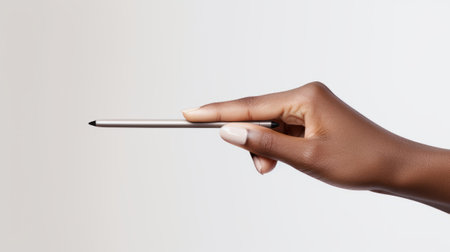 an african black woman hand holding a pencil against a light backdrop AI generated