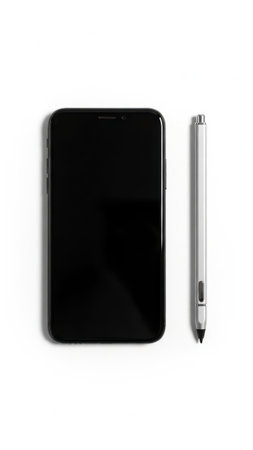 Stylus pen on a smart phone. Dark background. Technology mobile.