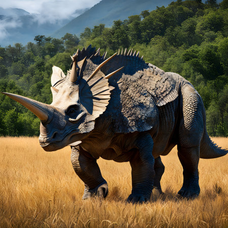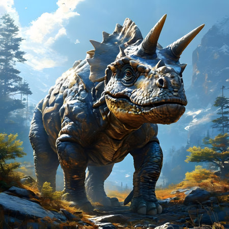 A realistic triceratops model showcases unique features and textures in soft light