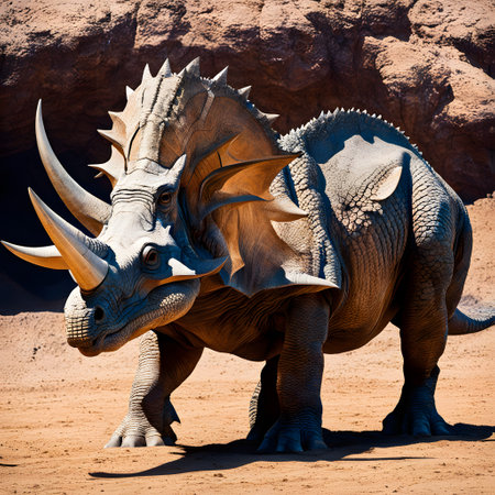Detailed Closeup Of Triceratops Created Using Innovative Technology.