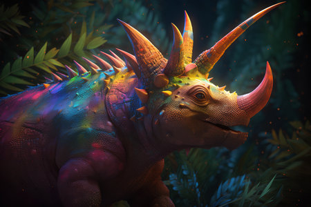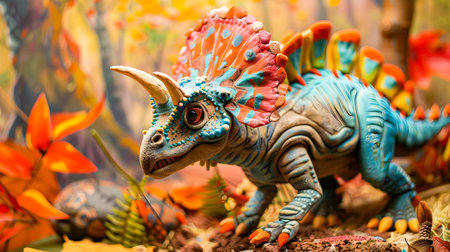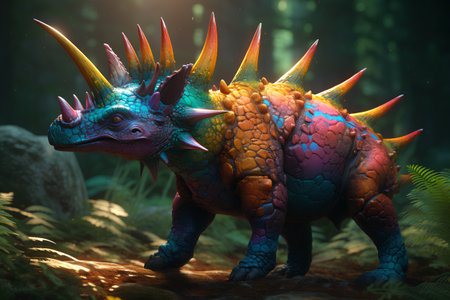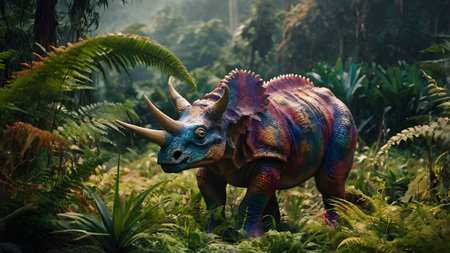 Triceratops Dinosaur in a whimsical and colorful style. In natural habitat. Jurassic Park