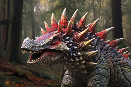 Stegosaurus dinosaur in the forest. Triceratops dinosaur