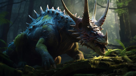 3d rendering of a dinosaur styracosaurus in the jungle