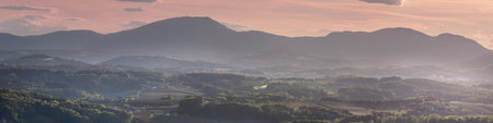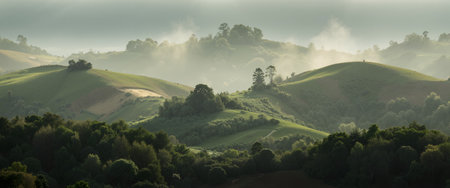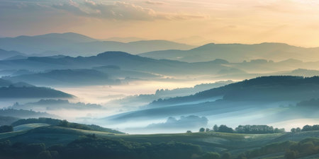 Panoramic view of the rolling hills of the countryside in the morning
