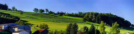 Beautiful green pasturage in Alsace, France, panoramic view