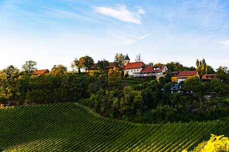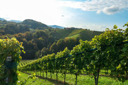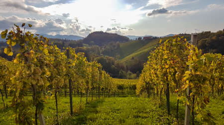 Austria vineyards landscape. Leibnitz area in south Styria, wine country. Tuscany like place and famous tourist spot