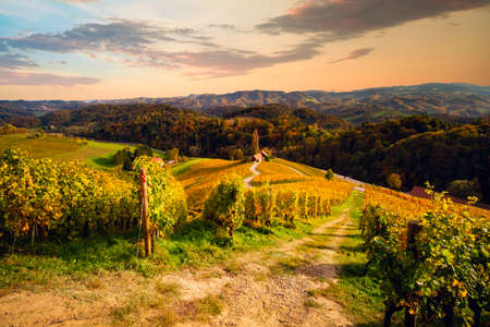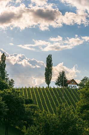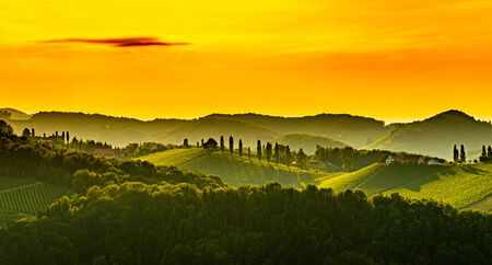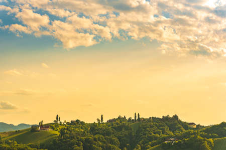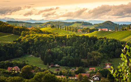 Austria, south styria travel destination. Tourist spot for vine lovers. Sunset landscape