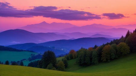 Sunset in the Carpathian Mountains, Ukraine, Europe.
