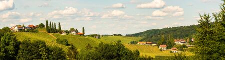 Panorama of Vineyards near Gamlitz Sulztal area south Styria, wine country. Sunny landscape of famous tourist destination.
