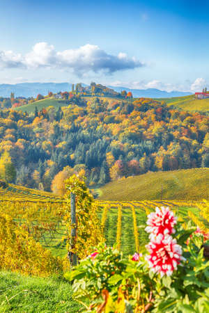 Styrian Tuscany Vineyard in autumn near South Styria, Rabenland. Tourist spot for wine lovers.