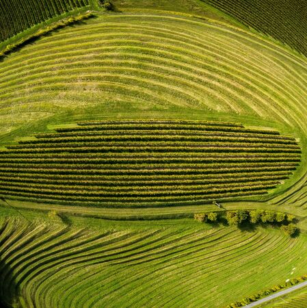 Famous heart shaped wine road in Slovenia. View from Spicnik, Svecina near Maribor. Natural landscape agricultural background.