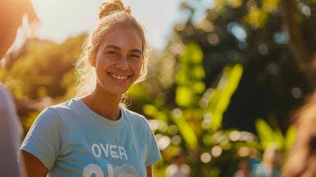 volunteer woman in a community service help other people during a sunny day. AI generated