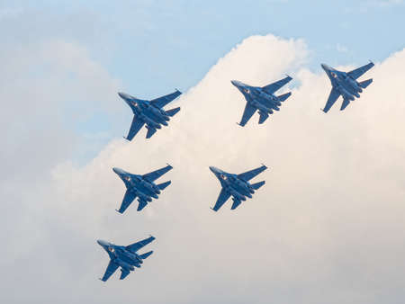 MOSCOW, RUSSIA - MAY 7, 2017: Military jets in parade rehearsal.